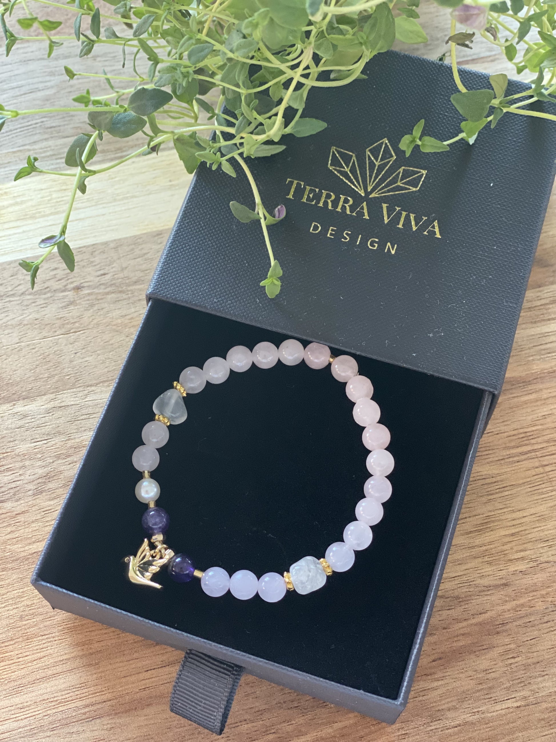 Den lys rosa Rosenkvartsen er kjærlighetens stein. Den forbindes med medfølelse, helbredelse og indre ro. Rosenkvarts kan være en påminnelse om å møte både seg selv og andre med varme og omtanke, og om å holde kontakt med hjertet – også når verden rundt oss er urolig.
