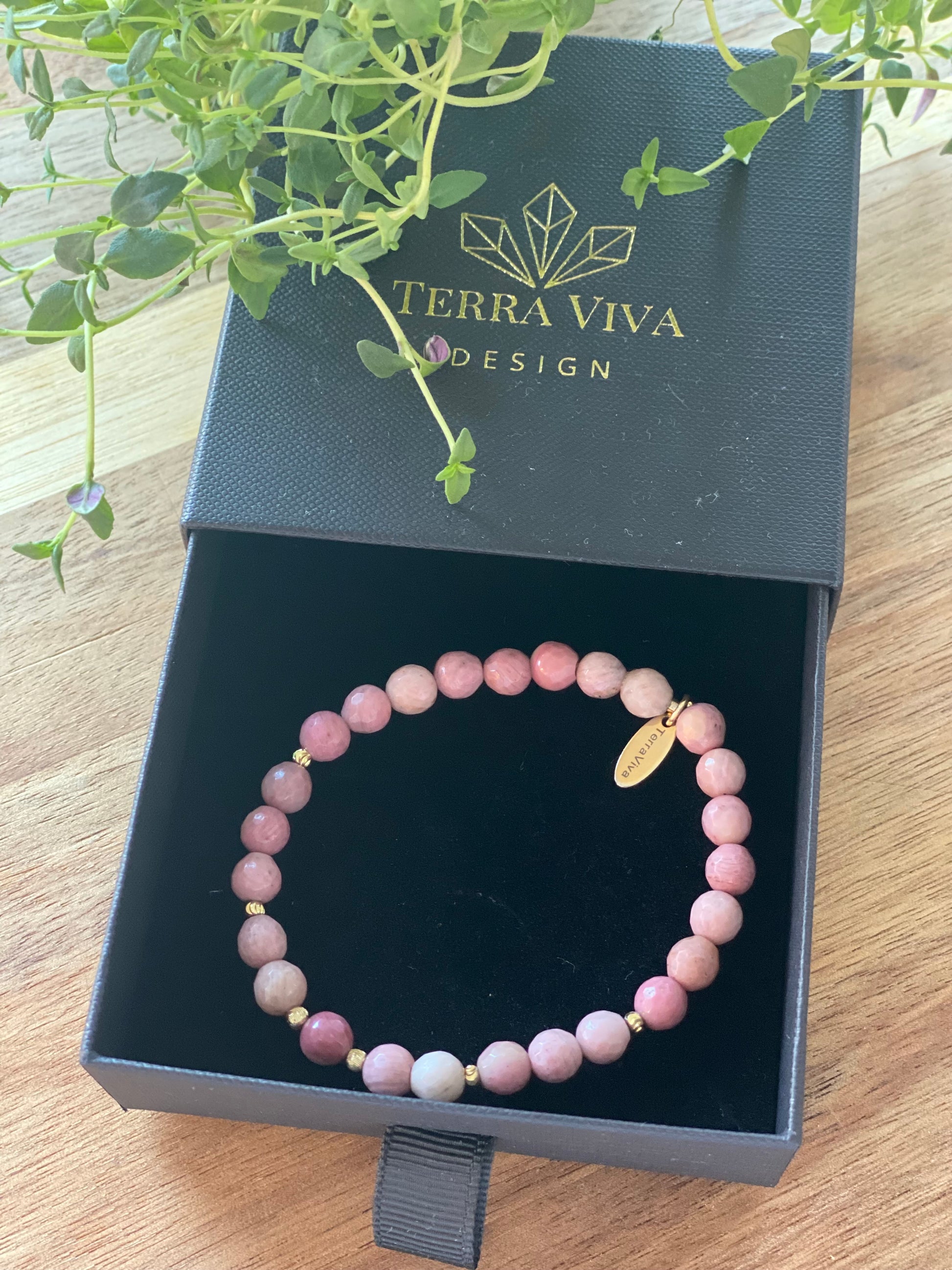 Med sin varme rosa farge og rolige energi, kan Rhodonitt bidra til å dempe sinne, sjalusi og frykt – og gi plass til det som bygger deg opp. Den hjelper deg med å se klart, kommunisere ærlig og leve mer fra hjertet.